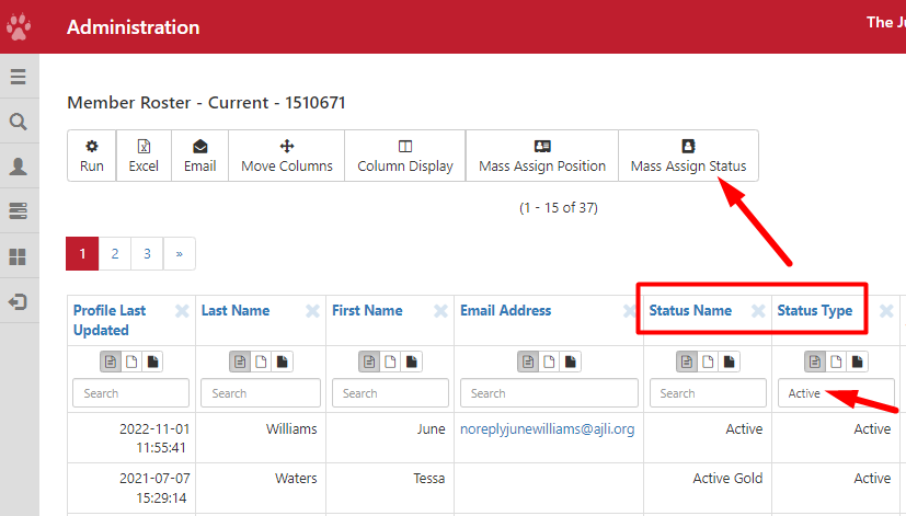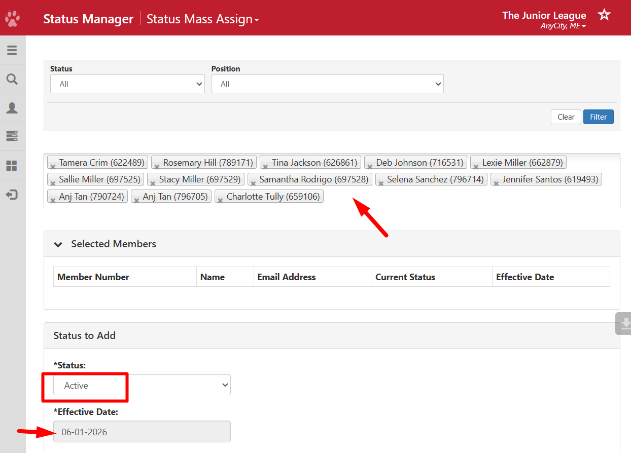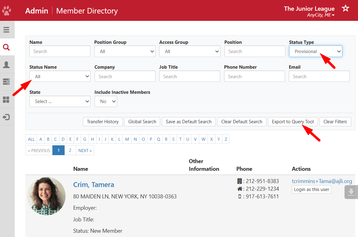 If you have multiple Members, choosing their name one by one is not ideal. You can run reports in the Query Tool and use the Mass Assign Status option.