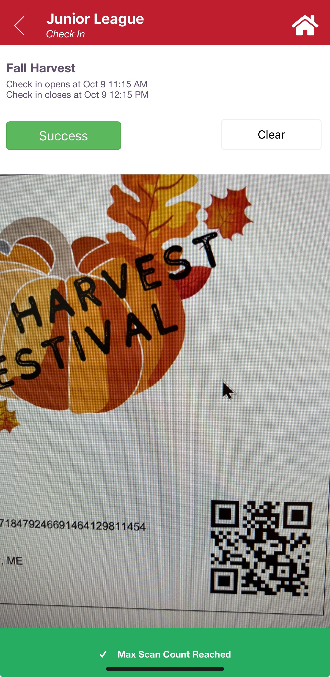 - You will see a Success return message when an attendee has been successfully scanned in.